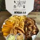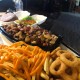 Pão com Creme de Alho e Bacon, Pernil, Alcatra, Coração, Frango, Linguiçinha, Polenta Frita, batata frita, Anéis de Cebola Empanados