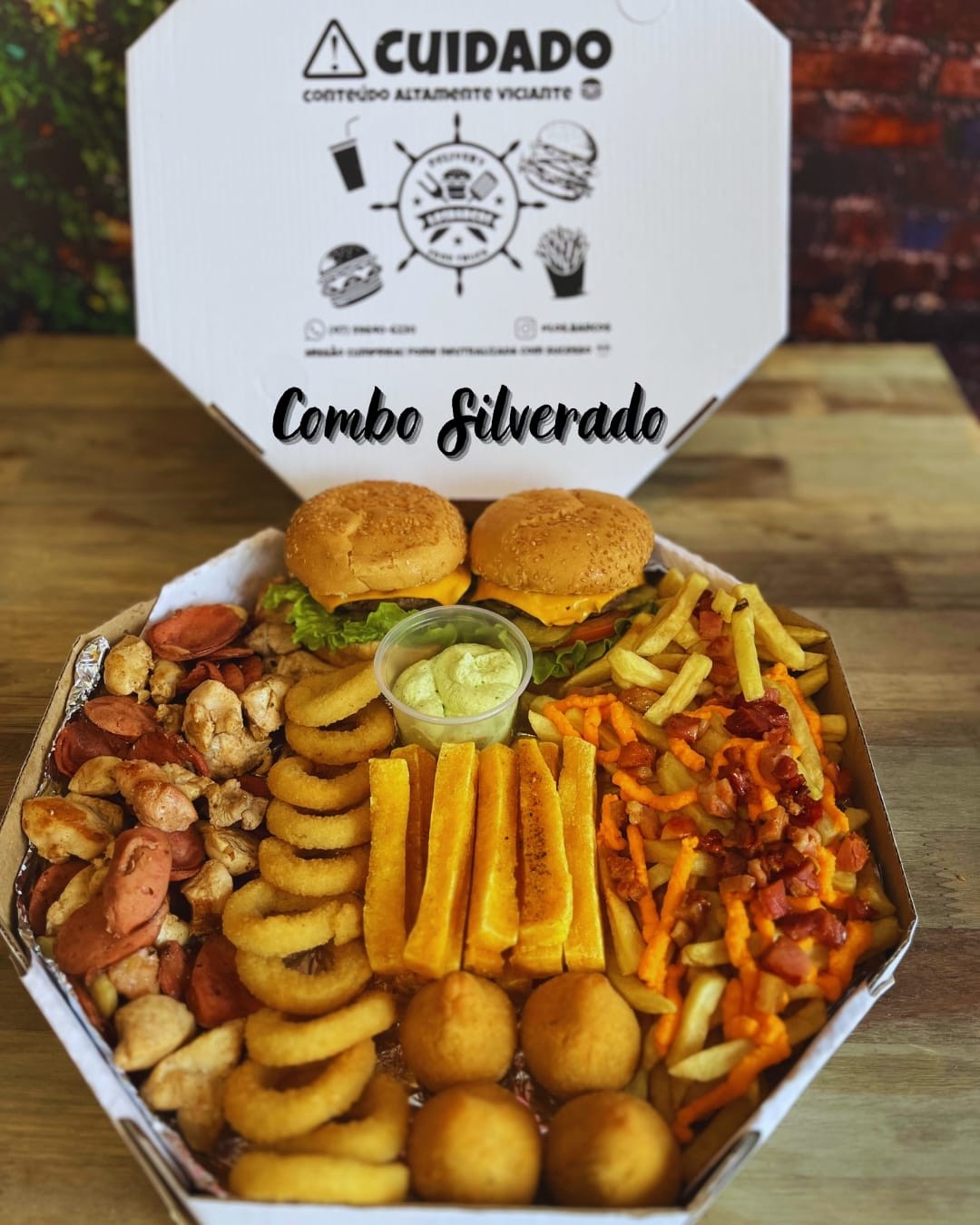 02 Cheese Tamanho normal 12cm (pode escolher entre Burguer; Salada; Bacon; calabresa ou egg), 04 mini coxinha de frango, Polenta frita, Cebola á milanesa, Batata Frita com Cheddar e Bacon, Petisco de frango e calabresa, maionese da casa
